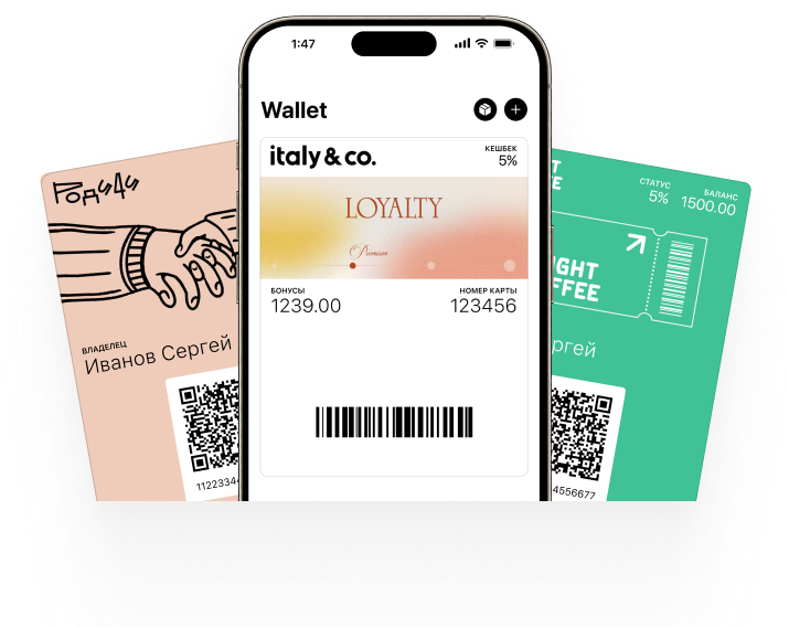 Электронная карта лояльности в телефоне гостя. Помогает ресторанам повышать продажи, собирать данные о визитах и предпочтениях для персонального сервиса и коммуникации с гостями.
